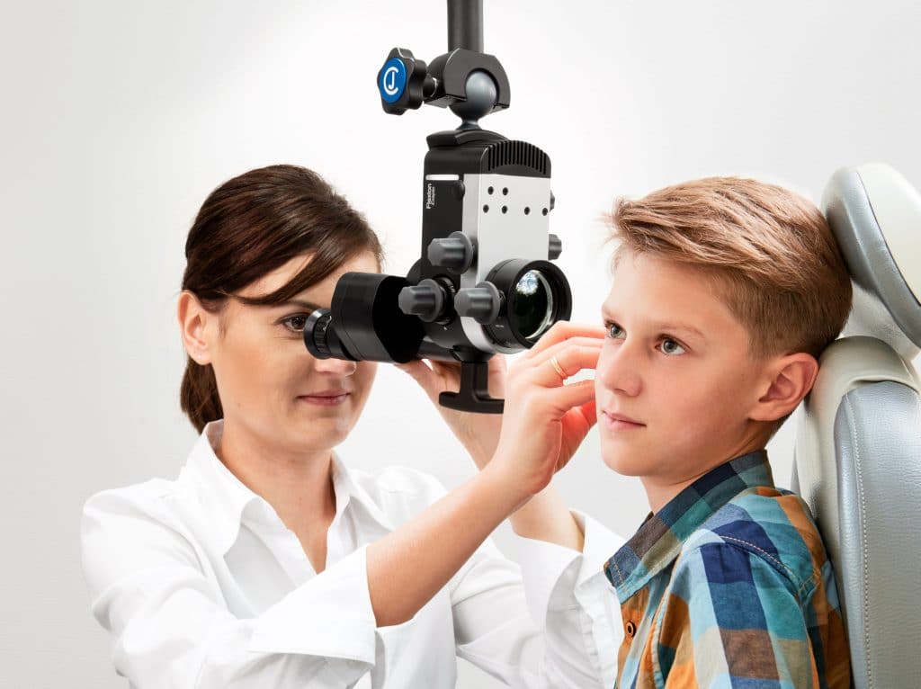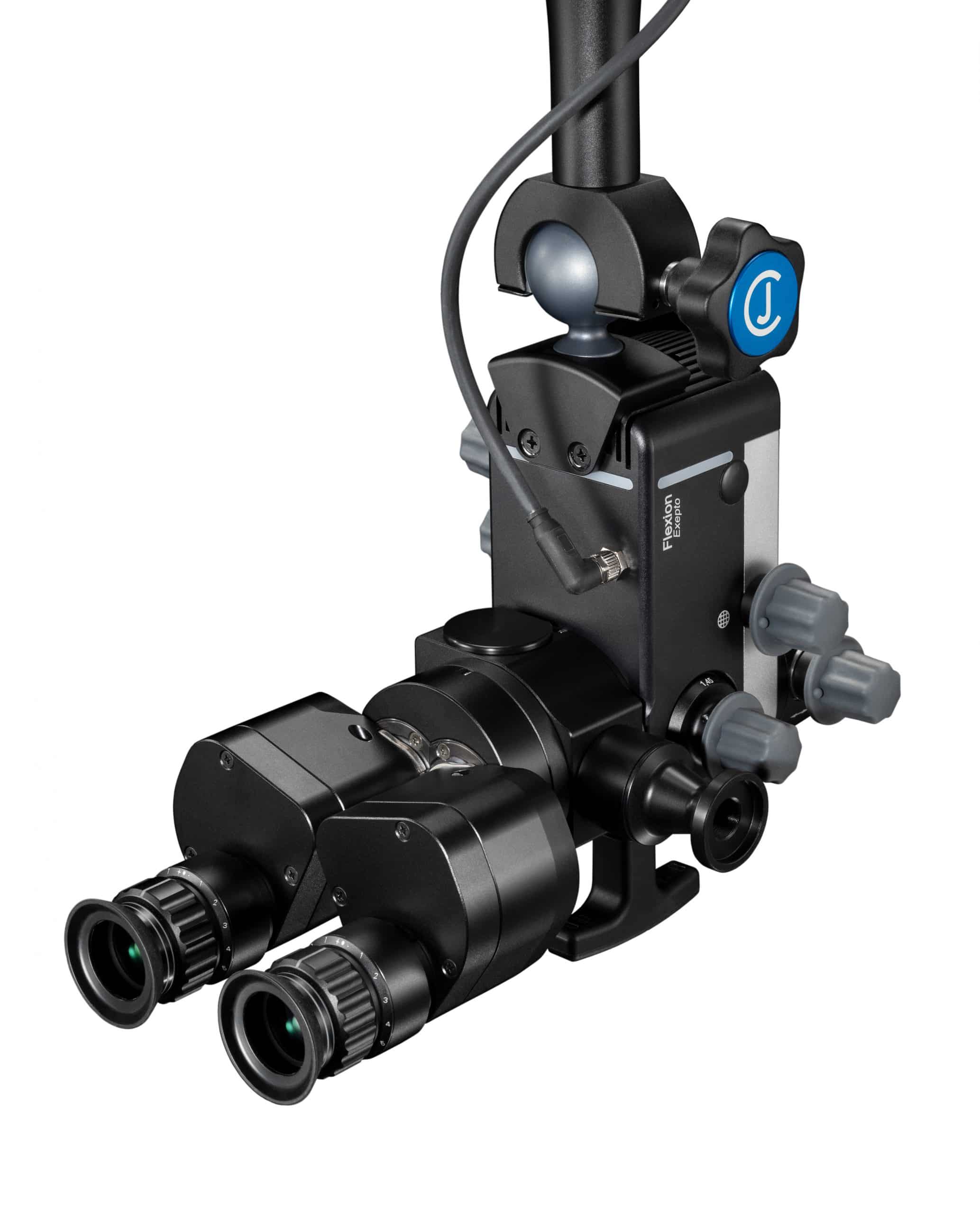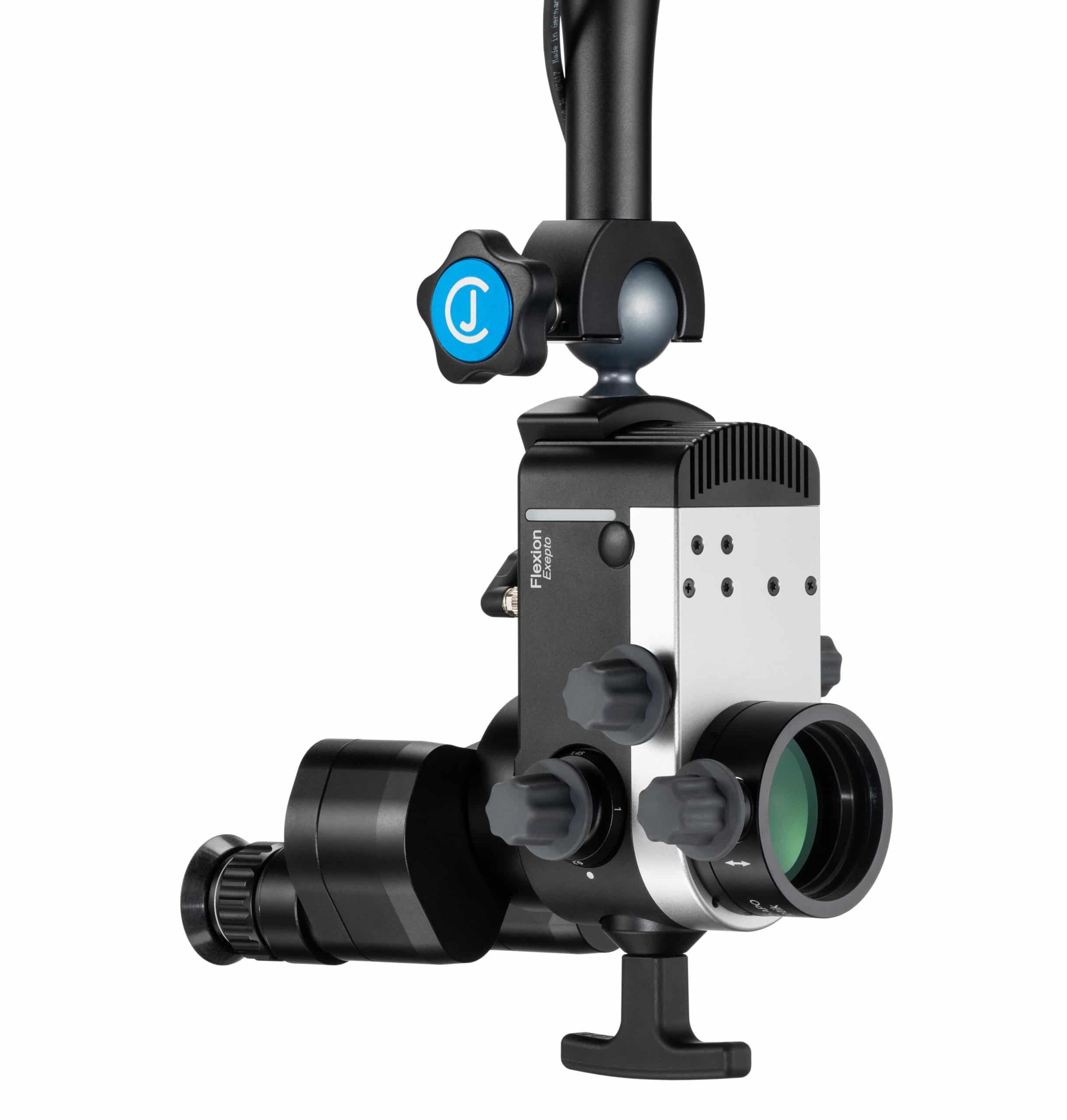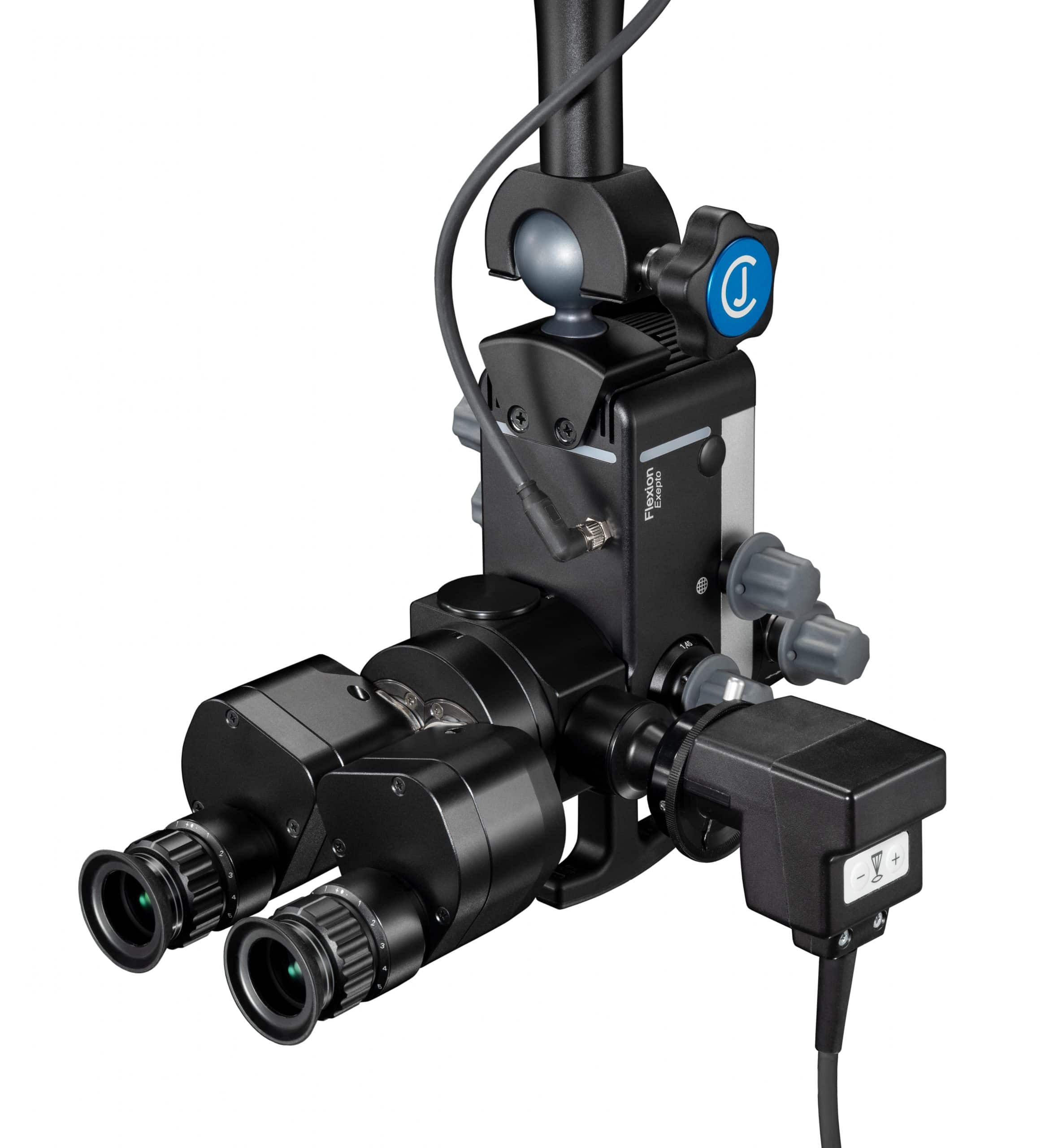 The Flexion Exepto is the modern microscope for the audiology practice. The outstanding optics and high LED luminosity enable precise audiological examinations of the auditory canal, the eardrum and the middle ear space. The modular system of the Flexion with its mounting options on the wall, floor, ceiling or on the rolling stand allows individual adaptation to every practice.